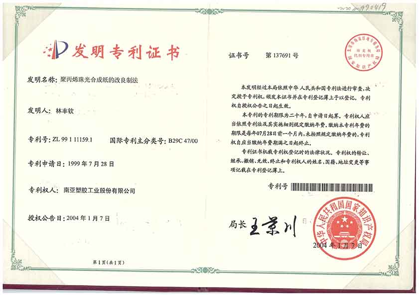 Improved production method for producing 25~250µ thick biaxial-oriented polypropylene synthetic paper with a single-screw machine |