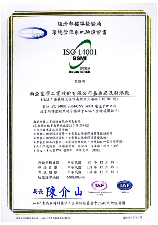 Obtained ISO 14001, international certification for Environmental Management Systems. |